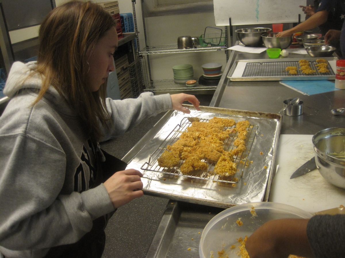 2. Cooling racks can be used in the oven to keep breading on the chicken, rather than stuck to the pan. To achieve the sought-after crunch (without all the unnecessary oil used in frying) on our Brainfood classic "Fake Flake Fried Chicken", we use cereal and crackers as breading and then bake chicken in the oven. Even with the flour dredging and egg wash we use, sometimes the breading comes off the chicken when it's baked. It turns out that using a cooling rack misted with cooking spray, on top of an aluminum-foil-lined cookie sheet, is the magic combination to prevent breading mushiness or loss.