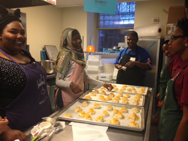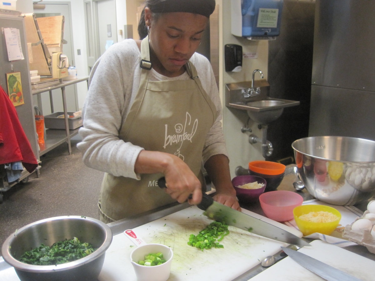 Just over two months ago, these same teens gathered in our Brainfood kitchens for the first time; they spent their first class learning how to measure wet and dry ingredients in order to make oatmeal chocolate chip cookies. Now they have whisked, diced, and simmered their way into creating a delicious, festive meal that served over 100 participants and enthusiastic supporters.