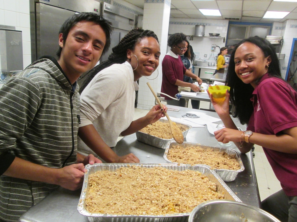 The menu, decided by a student vote, included a vegan three-bean chili, green bean casserole, cheddar biscuits (the crowd favorite), crustless quiche, apple crumble, and pumpkin chocolate chip muffins.