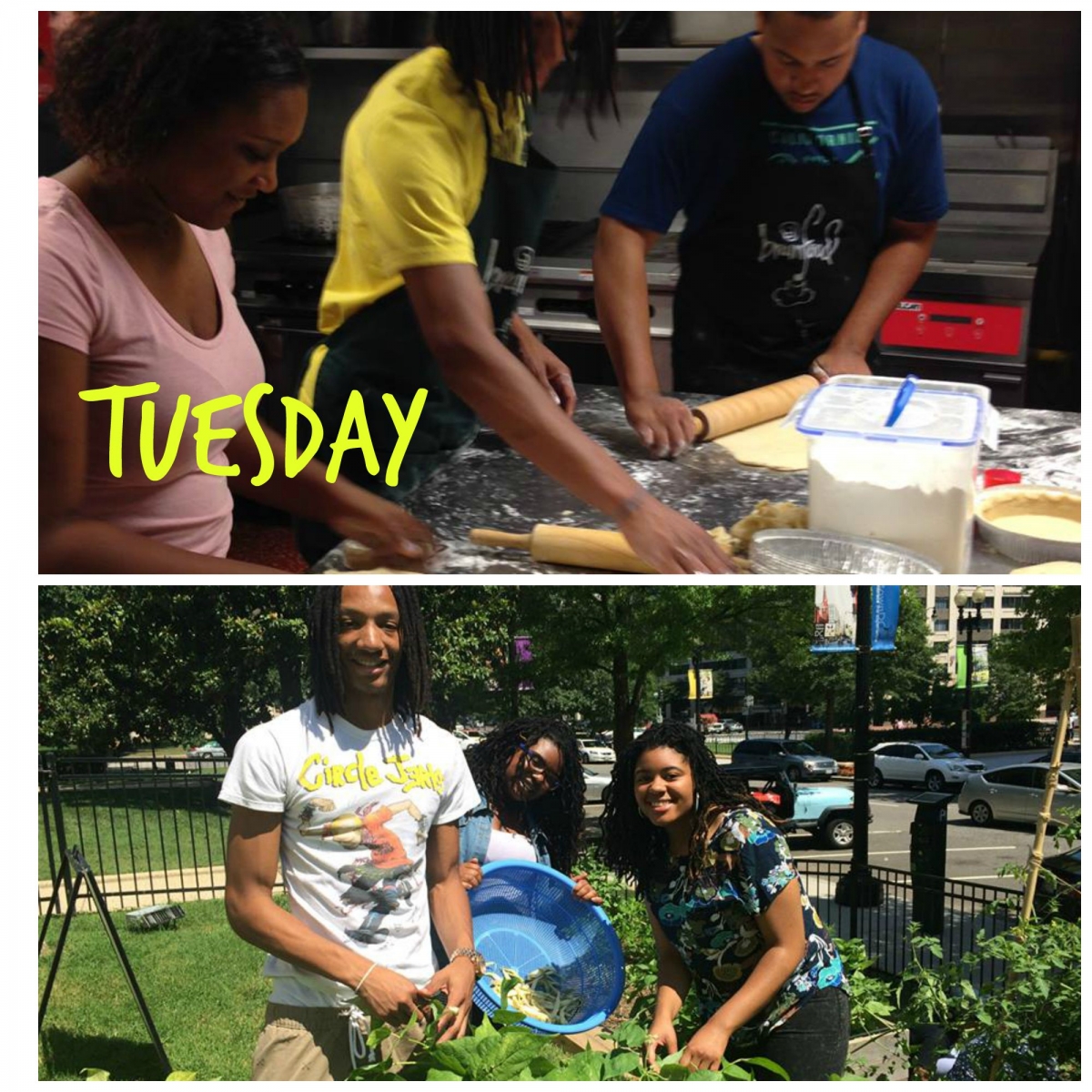 On Tuesday, some folks carefully roll out dough for breakfast tarts, and others take a trip to the garden to harvest some fresh herbs.