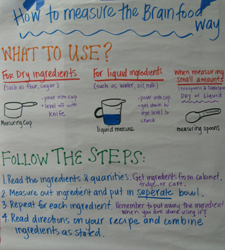 - Time to prep, cook, and clean: Working in groups, participants find ingredients and kitchen equipment, prepare ingredients, read and follow their recipe and then clean their dishes and work stations.