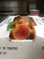 A delicious box of peaches for clients from Bounty Hill Farms