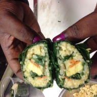A delicious Curried Kale Wrap waiting to be eaten by clients!
