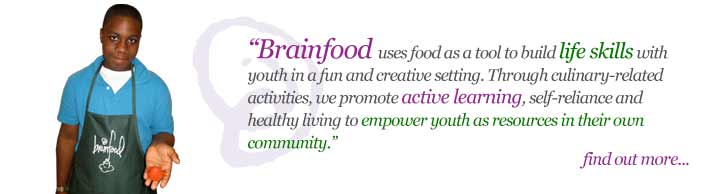 "I love to cook and Brainfood is an awesome opportunity to expand my cooking skills" ~ " I come to Brainfood Kitchen All Stars because it's fun." ~ "I love Brainfood because I get to meet and work with new people." ~ "Thank you guys for teaching me new cooking skills and new ingredients! I'll definitely use the experiences I've gained from Brainfood in the future!"